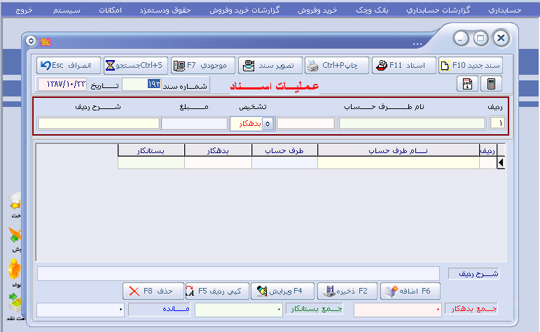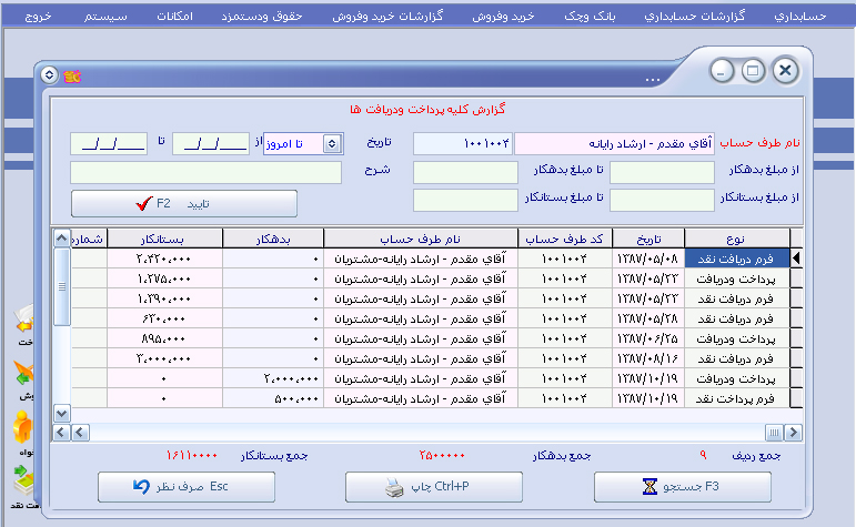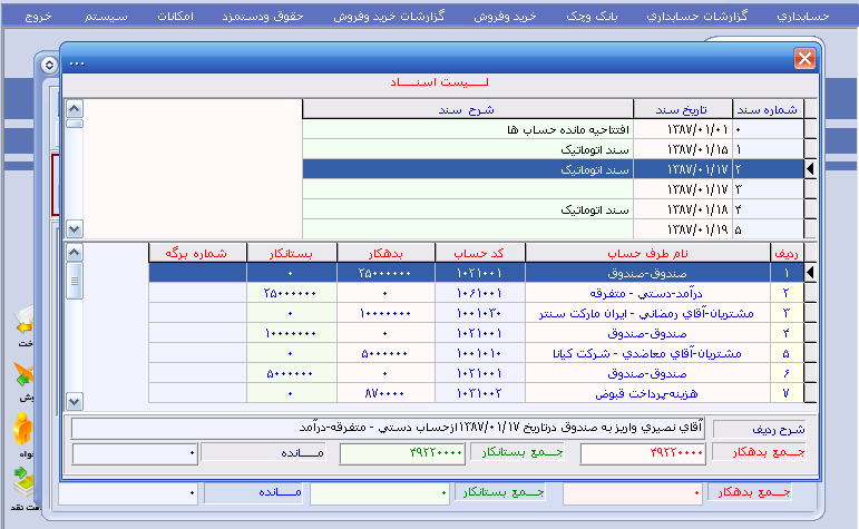 گزارشات دفاتر : ( گزارش از دفاتر کل ، معین و تفضیلی ، دفتر روزنامه ) |