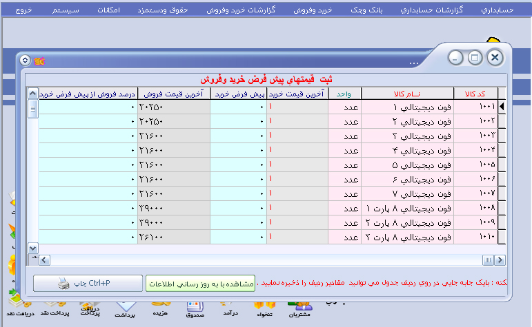 مقایسه توضیحات و قیمت های نرم افزار حسابداری نفیس |