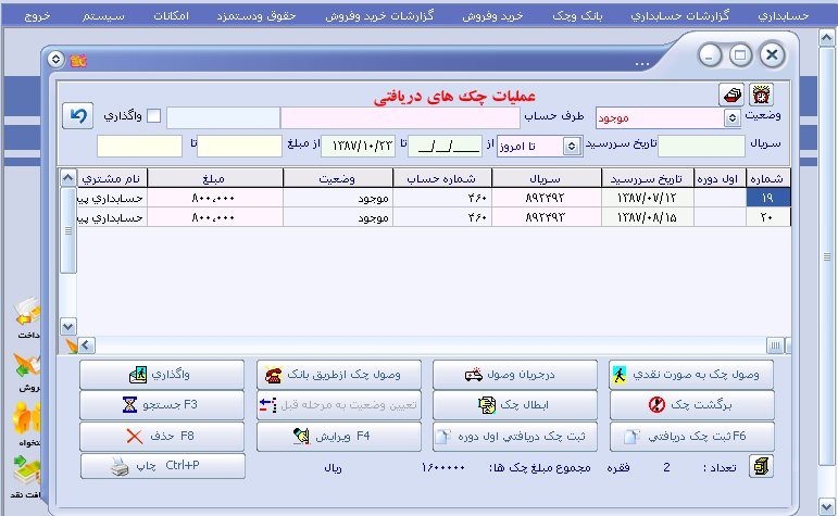 ثبت دفترچه اقساط برای مشتریان ، گزارش بد حسابها و عملیات دریافت قسط |