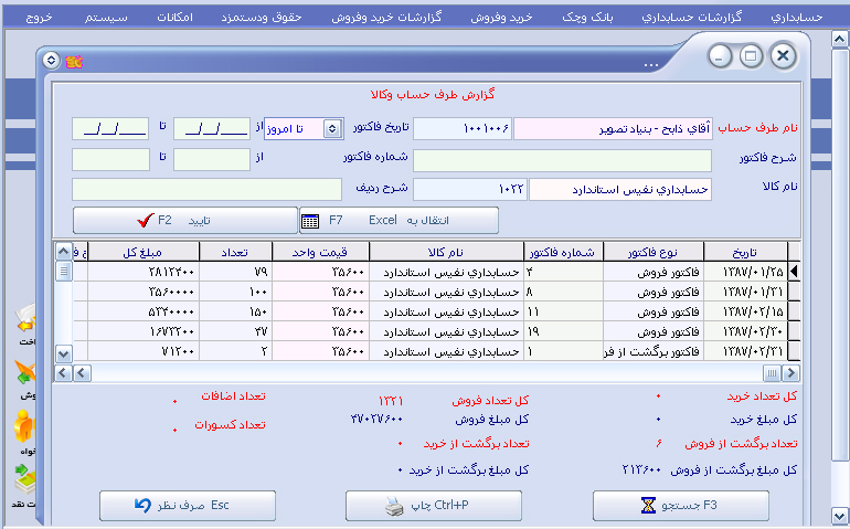 گزارشات کالا و انبار : ( کاردکس کالا و خدمات ، عملکرد ویزیتورها ، کارت انبار ، موجودی انبار) |